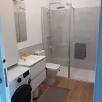 O Casa Rocha Velha Con Terraza Y Piscina Particular Apartamento de 40 m² dispõe de casa de banho com secador de cabelo, lençóis de banho e toalhas. Além disso, encontrará casa de banho separada e chuveiro.